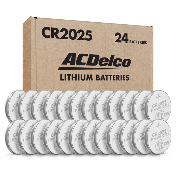 ACDelco 24-Count CR2025 Batteries, Lithium 3V Coin Cell Button Battery Pack for Watch and Small Electronics, 5 Year Shelf Life