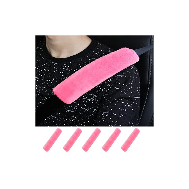 acdiac 5 Pack Soft Plush Car Seat Belt Shoulder Pads Universal Fuzzy Car Seat Belt Cover Faux Wool Shoulder Pads Strap Cover (Pink)