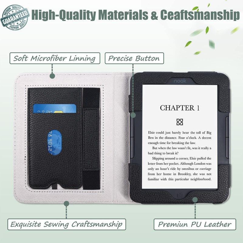 - Ultimate Convenience: This protective case features a practical card slot, so you can carry your cards, ID, and other essentials securely along with your Nook Glowlight 4 Plus. Never worry about leaving important items behind.