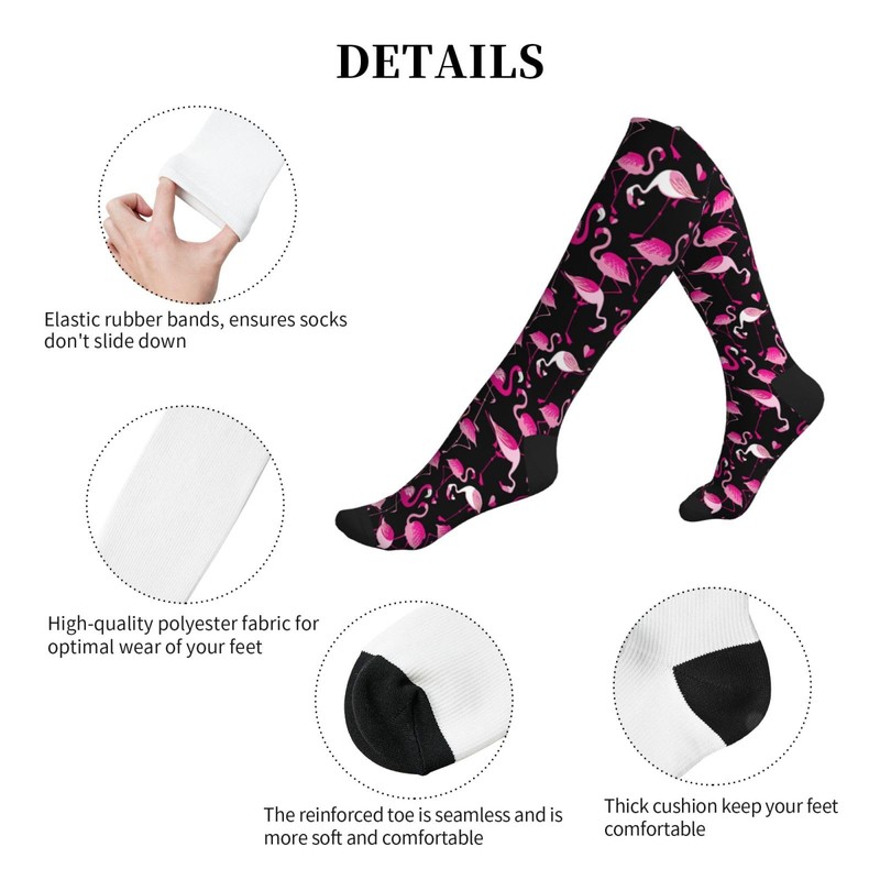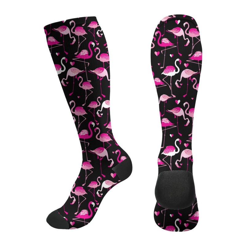 ACDRUING Pink Flamingos Unisex Compression Socks 15-20mmhg Over The Calf Socks Men & Women Socks For Running, Nurses, Flight, Travel