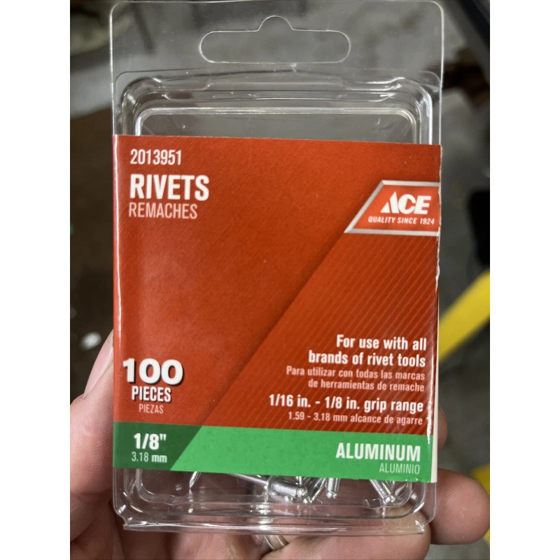 Ace 1/8 in. D X 1/8 in. Aluminum Rivets Silver 100 pk. Condition is New. Shipped with USPS Ground Advantage.
