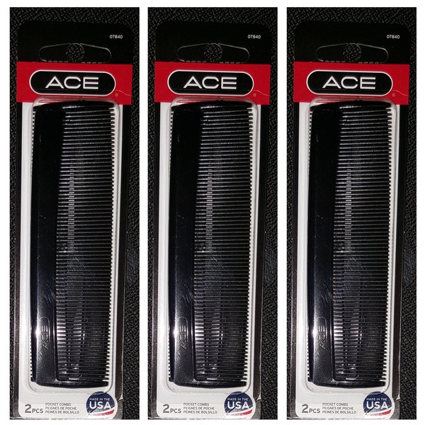 Ace 5" Inch Pocket Comb Black 2 Count (Pack of 3) = 6 Combs Per Order
