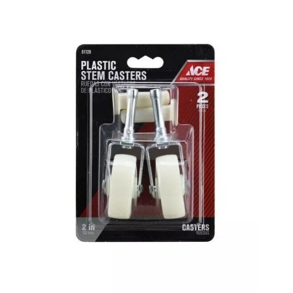 ACE 51172 Clear Stem Casters for Tea Cart, TV Cart, Serving Carts 2" twin pack