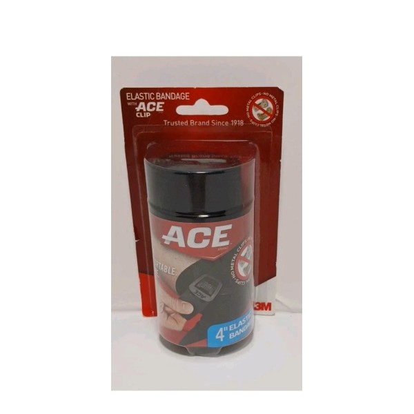 ACE Black Elastic Bandage 4 Inch Plastic No Metal Clip Secure Compression Wrap