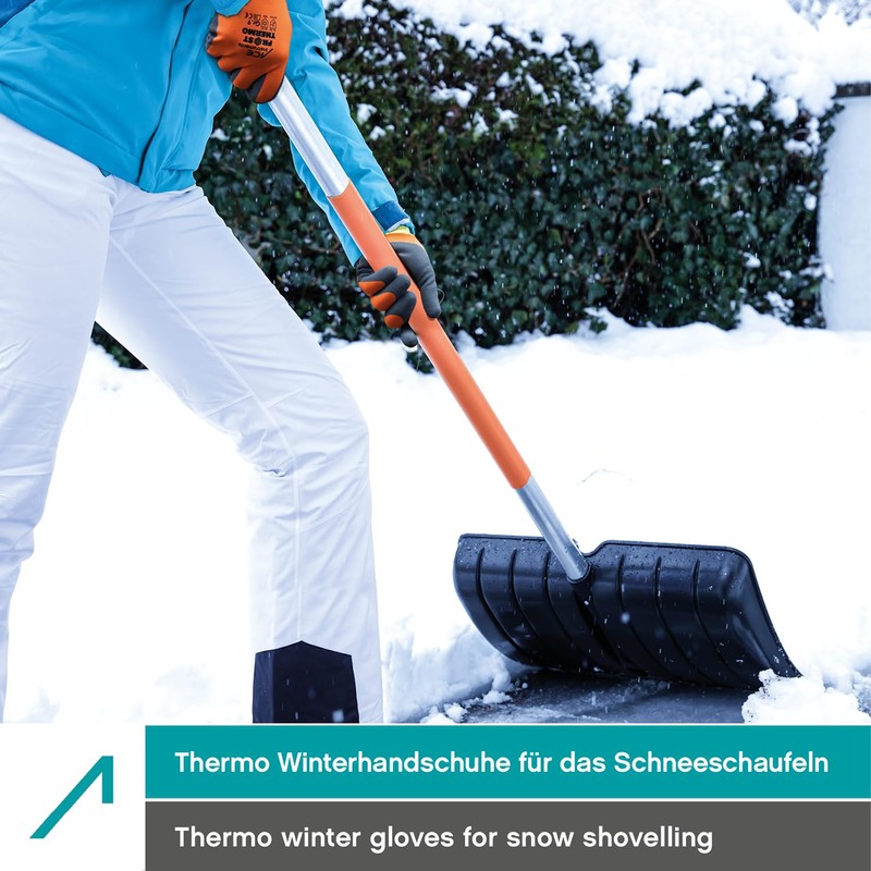 These thermally insulated work gloves are suitable for private use when shoveling snow as well as for professional use in cold stores and logistics centres.