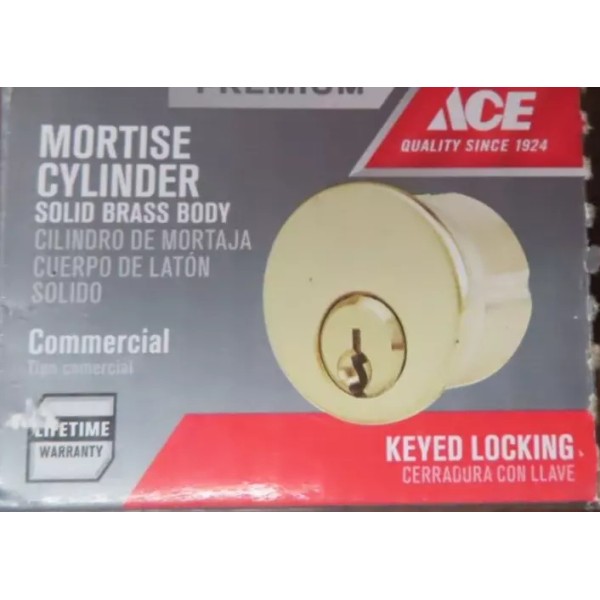 ACE Schlage SC1 Keyway Mortise Cylinder Solid Brass Bright Brass Finish 2 Keys