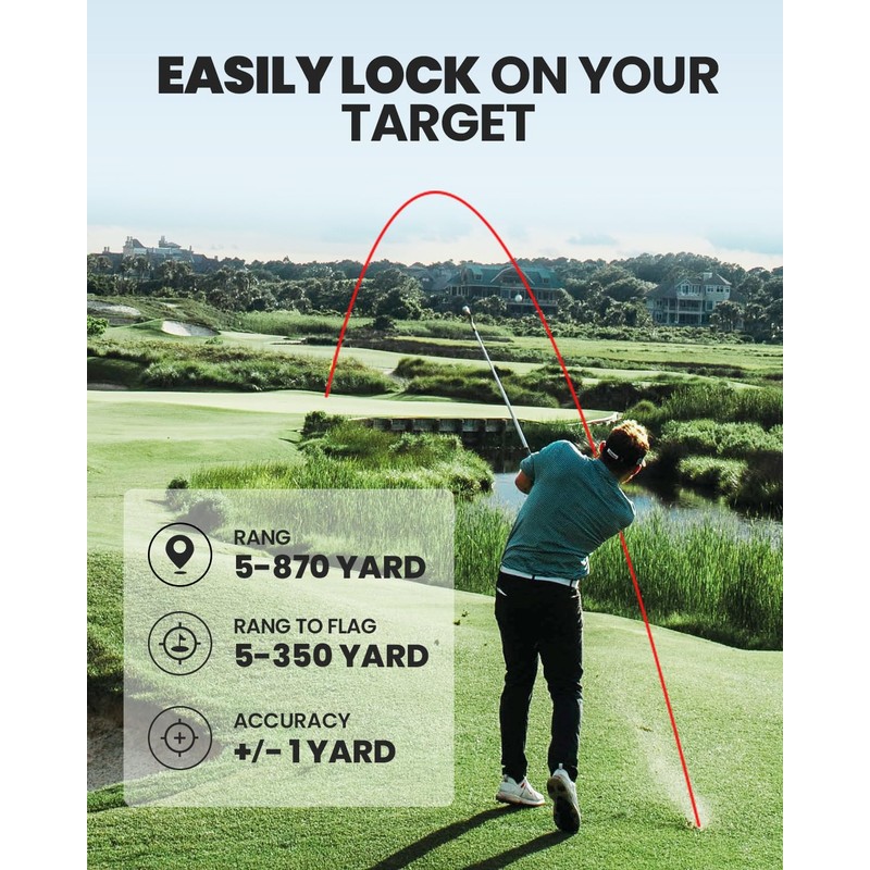 - ±1 Yard Accuracy & 6x Magnification: Equipped with 6x magnification, our rangefinders for golfing feature a flag-locking range of 5-350 yards and a general range of 5-870 yards with ±1 yard accuracy, ensuring you get the most reliable distance to your target. Whether you're a beginner, women's golfer, or a pro golfer, our rangefinder is your perfect accessory on the course