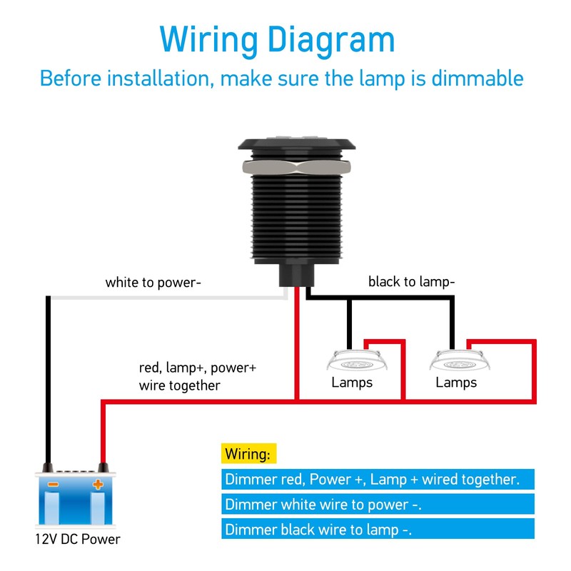 - Reliable Physical Push Button: Unlike capacitive touch switches, our 12V dimmer switch features a reliable mechanical push button. Intuitively designed for easy operation, it ensures a stable and dependable performance without the risk of malfunctions