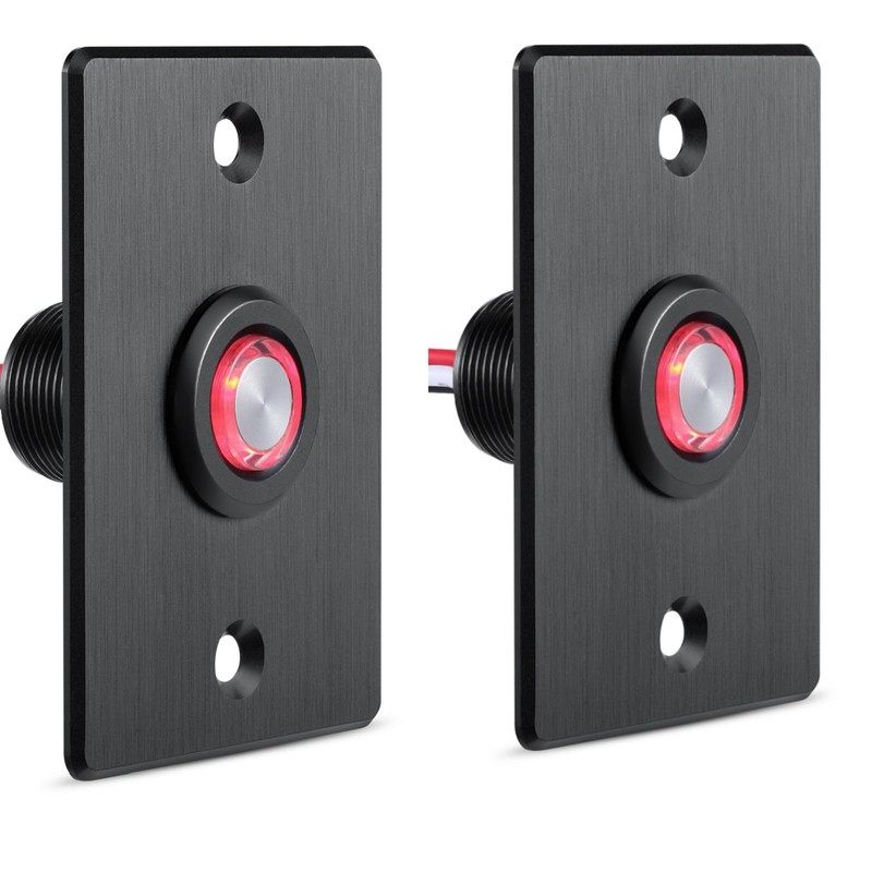 Acegoo 12V Dimmer Switch for LED RV Lights - Push Button with Red Ring Light, Ideal for RV, Camper Van, Boat, Truck, Cars Lighting & LED Strip Light - DC12-24V 6A Full Aluminum (Black-2Pcs)