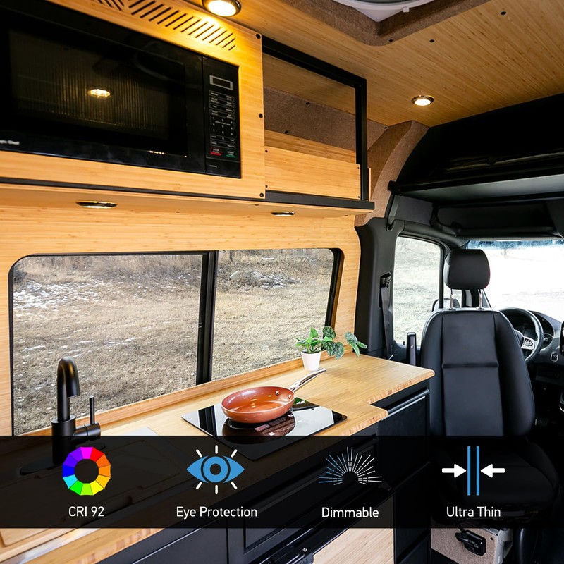 Versatile - Slimline & lightweight, used as over bed reading light, ceiling light and under cabinet light, etc. in the campervan.