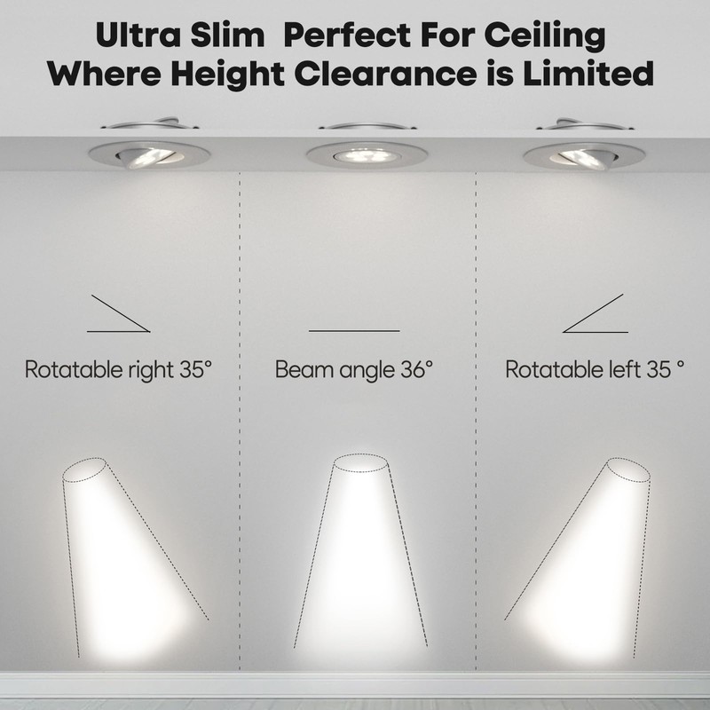 - 【Slim design】Requiring only a minimal 1-inch gap, vibration-proof recessed mount with spring clips, light fixture sits flush with ceiling, clean look after installation.