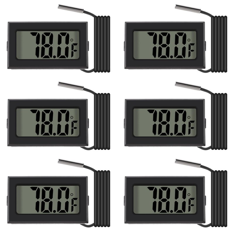 ACEIRMC 3pcs Black Digital LCD Thermometer Temperature Monitor with External Probe for Fridge Freezer Refrigerator Aquarium (Fahrenheit) (6pcs)