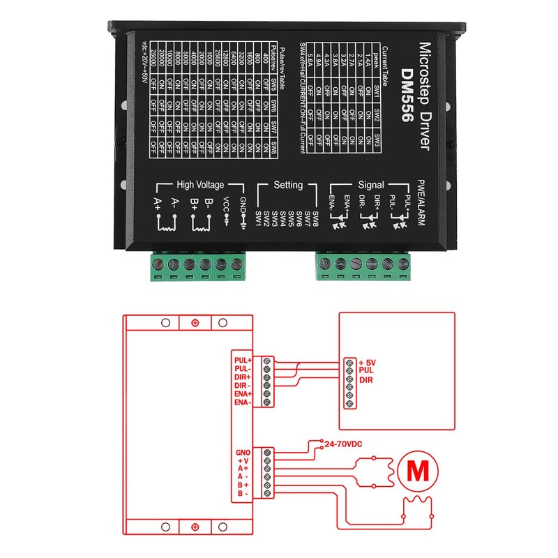 - CNC Digital Stepper Driver DM556 Stepper Motor Controller 2-Phase Stepper Motor Driver 20-50V DC Max 5.6A 128 Subdivision