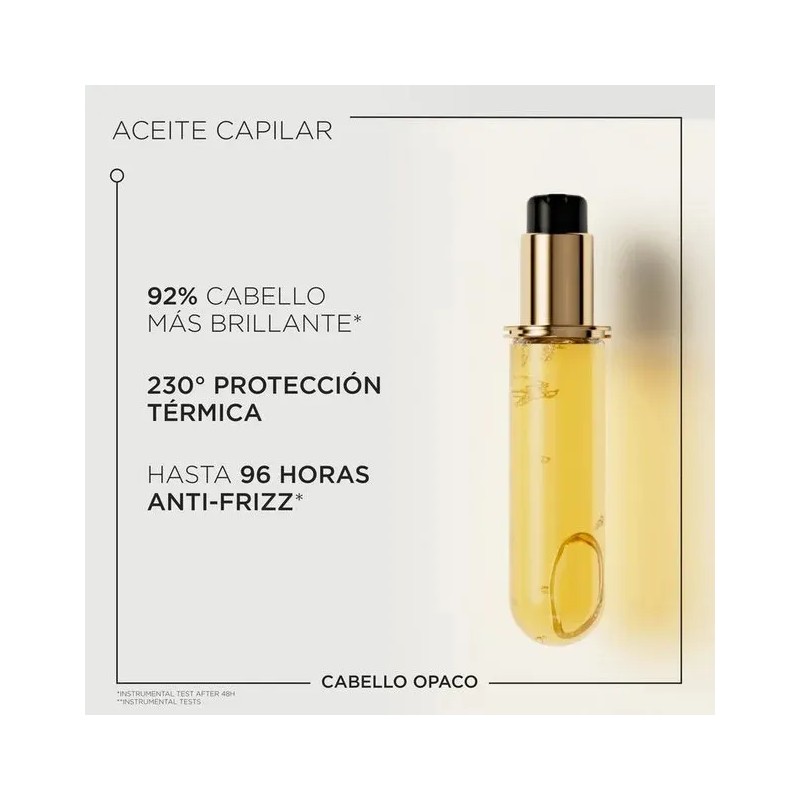 ¿Tu cabello se siente apagado o rebelde? Este elixir dorado actúa desde el interior, fortaleciendo y protegiendo la fibra capilar, mientras que su textura ultraligera se absorbe rápidamente, dejando solo un brillo espectacular y una suavidad que se siente. 💫 No más preocupaciones por el frizz o la sequedad, ya que este aceite sin aclarado también funciona como un escudo térmico, protegiendo tu melena de las altas temperaturas.