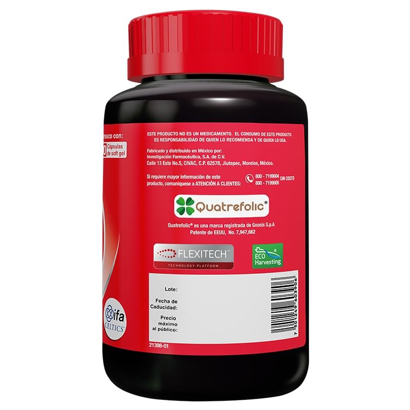 • Frasco con 60 cápsulas de soft gel.