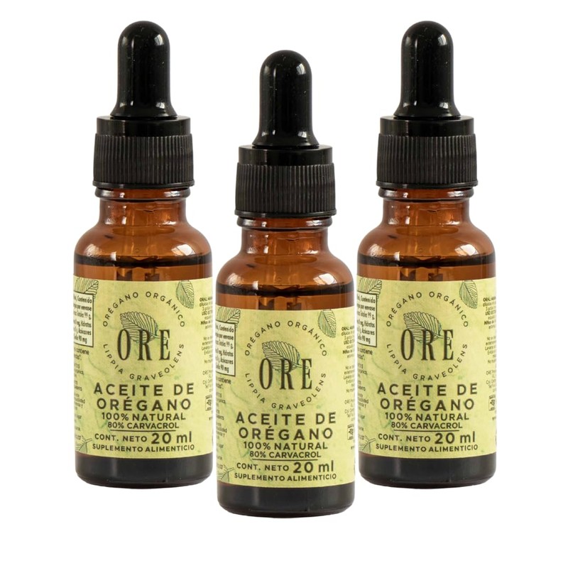 Aceite de Orégano Natural ORE, 20 ml, Pack de 3 Botellas con Gotero