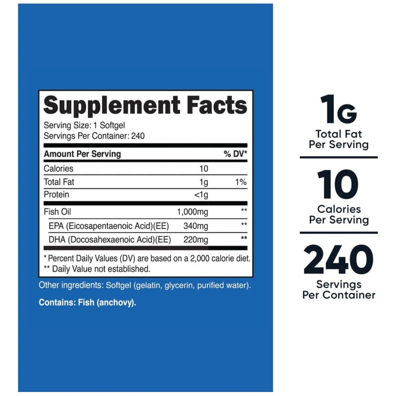Aceite De Pescado Epa 340 Mg Dha 220 Mg 240 Capsulas Sabor Sin Sabor