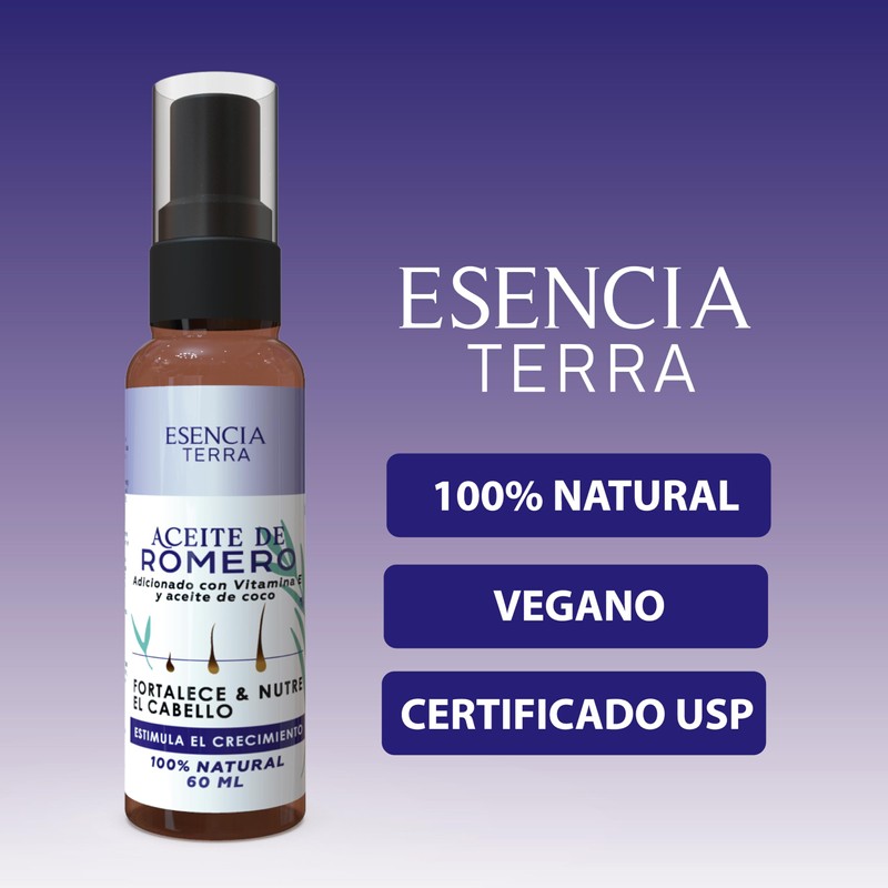 - Estimula el Crecimiento: El aceite de romero estimula la circulación del cuero cabelludo, favoreciendo un crecimiento más rápido y saludable del cabello.