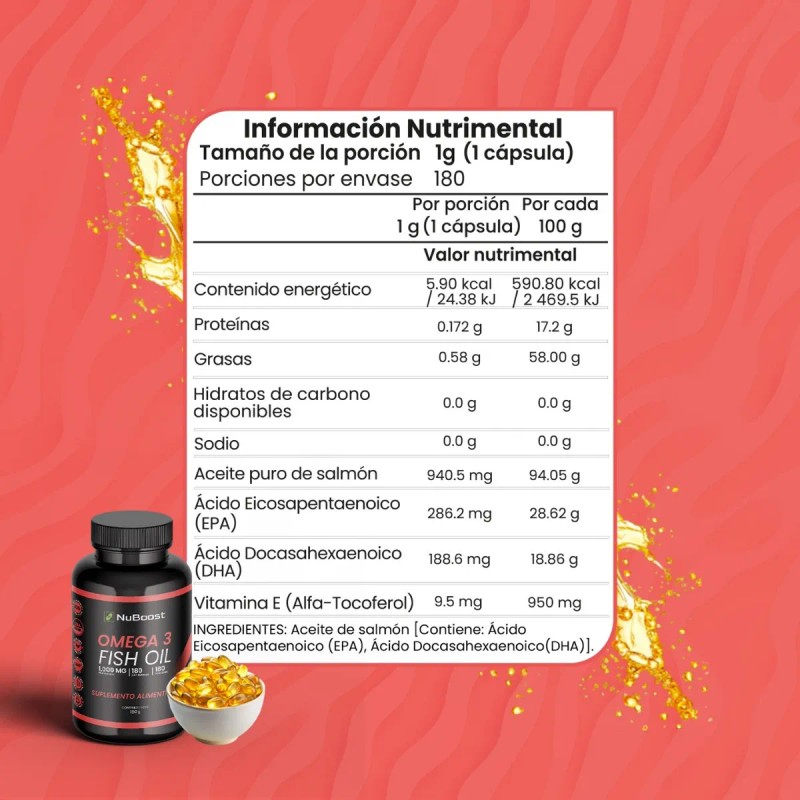 Aceite De Salmon Omega 3 1000mg Con Epa Y Dha 180 Cápsulas Sabor Sin Sabor Nuboost