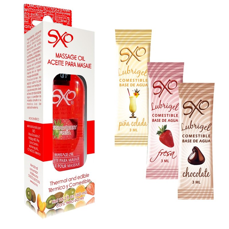 Aceite para Masaje 60 ml Termico y Comestible con Ingredientes Grado Alimenticio (Fresa 3 Lubricantes)