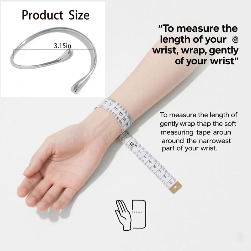 - Size:With an inner diameter of around 3.15 inches and a flexible open design, getting the right fit has never been easier.No more struggling with clasps or worrying about it being too tight or too loose.Just slip it on and adjust it to hug your arm comfortably.It's designed to fit like a dream, whether you have a slender wrist or a more voluptuous arm