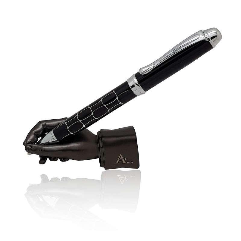 ACELY Executive Hand Shape Pen Holder Metal Art Craft Paperweight for Desktop Organizer Pen Display Stand Decoration (Satin Black)