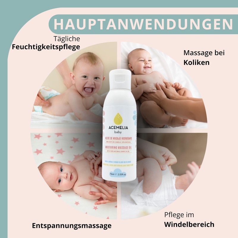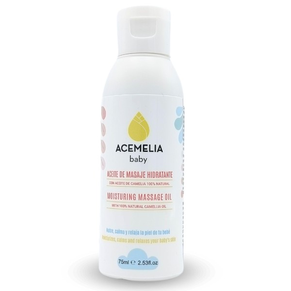 Acemelia Baby Oil - 75 ml - Moisture and Relaxing Abdominal Massage - For Abdominal Massages that Relieve Colic, Bloating and Constipation - 100% Natural - Handmade in Galicia