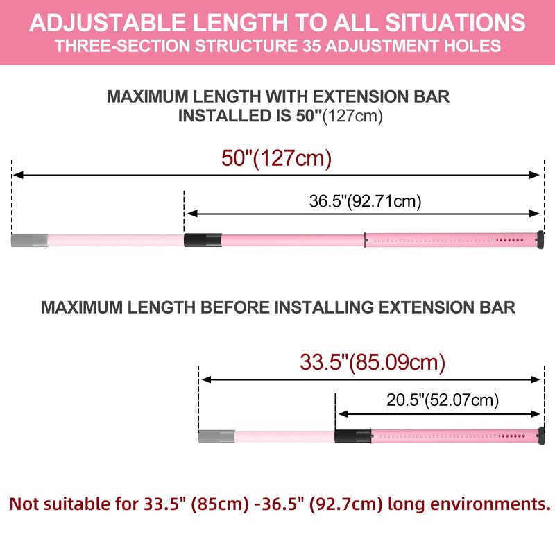 - Adjustable Length: The sliding door lock comes with an extra extension bar for smooth adjustment between 20.5-50 inches to fit various lengths. Equipped with enhanced high-strength alloy connections to extend the service life of the window bars security inside home.