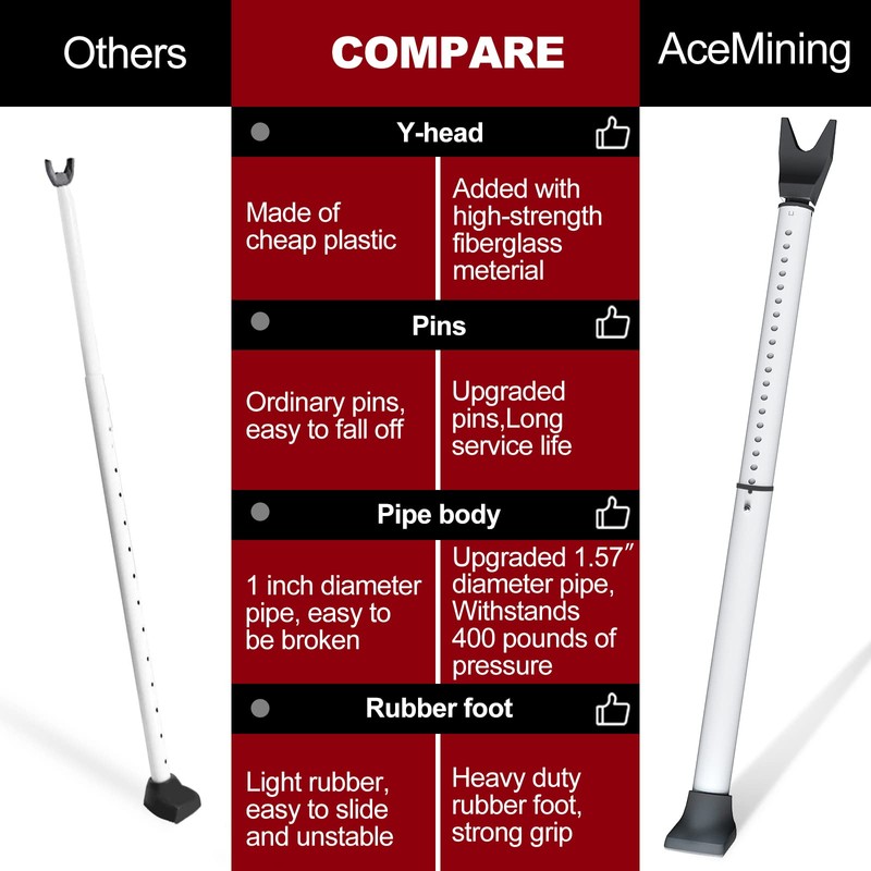 - [Versatile and Enhanced Design] The lock bar is equipped with enhanced high-strength alloy connections to extend the service life. It also features thickened 1.57inch pipe diameter design, high-quality material upgrades and plastic components made of high-strength fiberglass material making it stable and sturdy. Since the security bar on an AceMining door stopper can endure 400 pounds of force, an invader would have to be as strong as a heavyweight boxer to open the door.