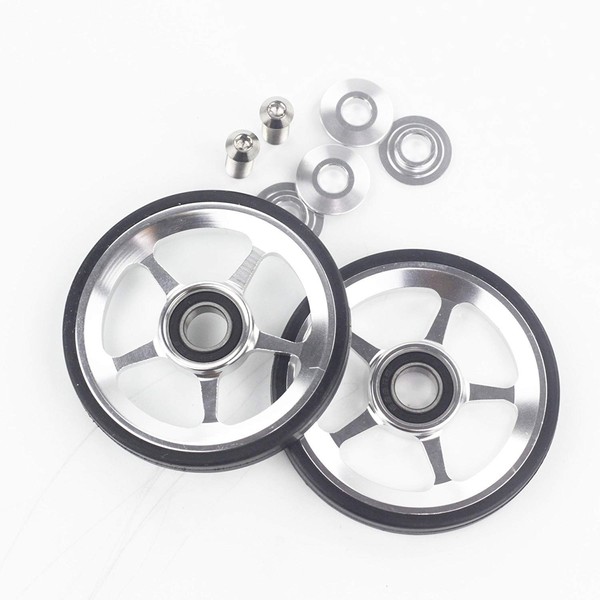 Aceoffix 2pcs Alloy Easy Wheels Easywheel & Titanium Bolts For Brompton Folding Bike Dino Kiddo(silver