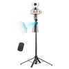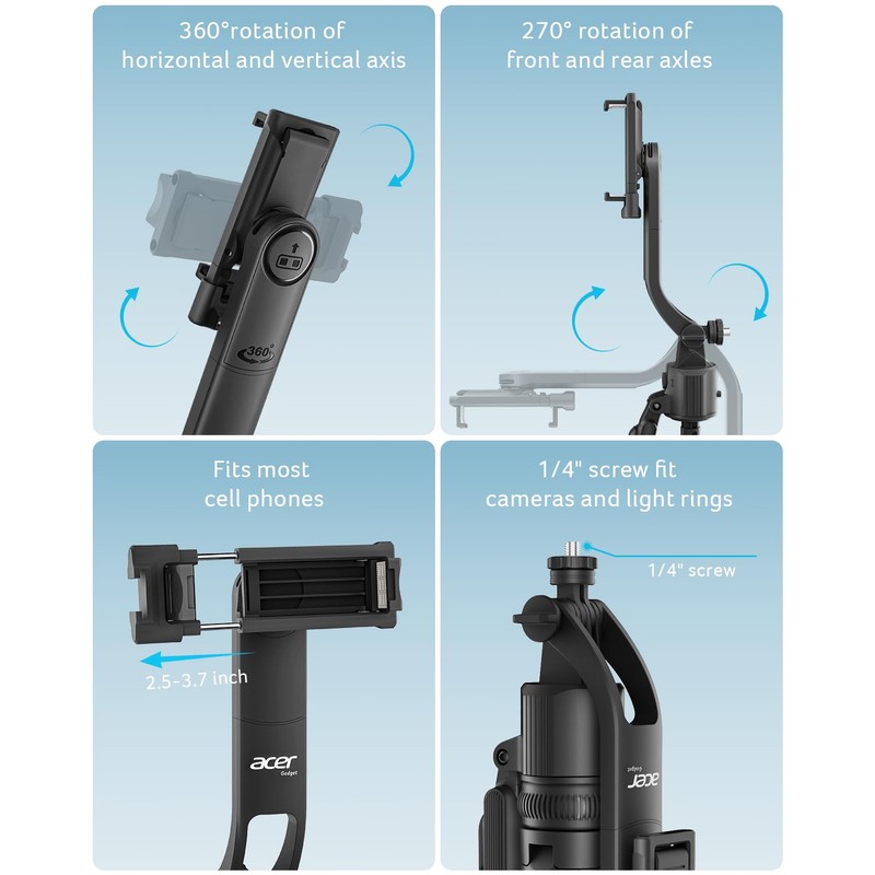 - Versatile Shooting Modes Designed for content creators, it transforms into a selfie stick, desktop tripod, floor stand, or handheld stabilizer. Compact and foldable, it's highly portable and features a built-in fill light. The integrated 1/4-inch screw supports cameras, GoPros, and ring lights.
