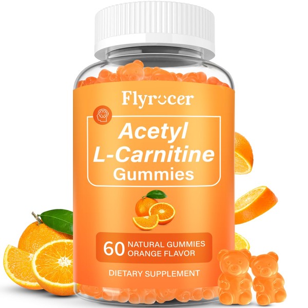 Flyrocer Acetyl L-Carnitine Gummies for Energy & Brain Function Support – Vegan, Non-GMO, Orange Flavor, 60 Count (30-Day Supply)