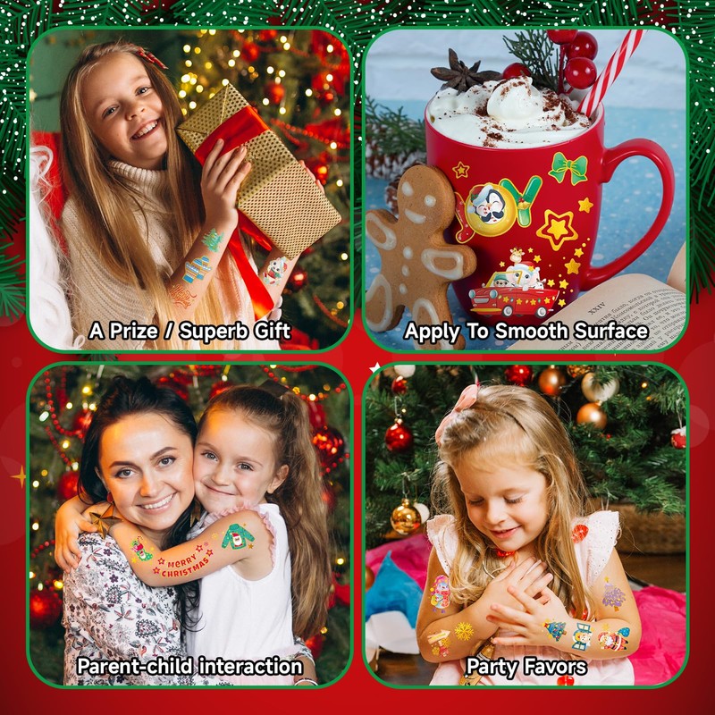 - CHRISTMAS GIFT These tattoos are the perfect addition to the Christmas stocking and can be given as a small gift to children to surprise them in the morning Christmas not only with a gift, but also with these full Christmas spirit filled tattoos and increase their expectations and joy at the festival.