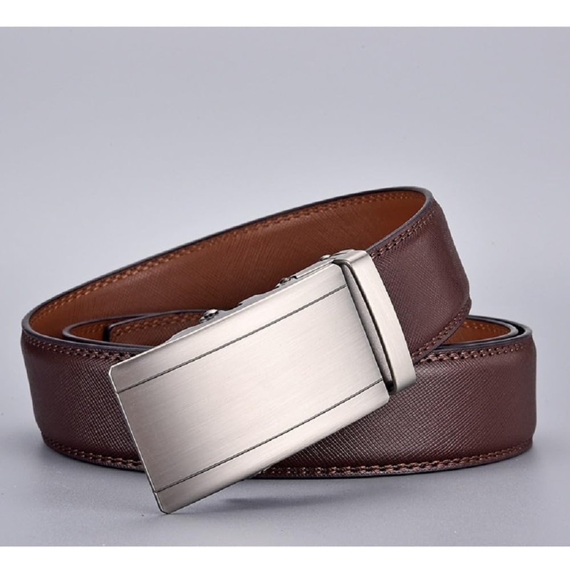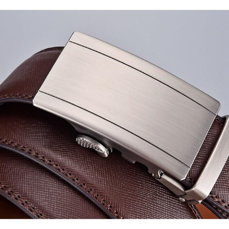 Acewin Men's Leather Belt, Automatic Work Belt, Adjustable, Width 35 mm, 02 brown
