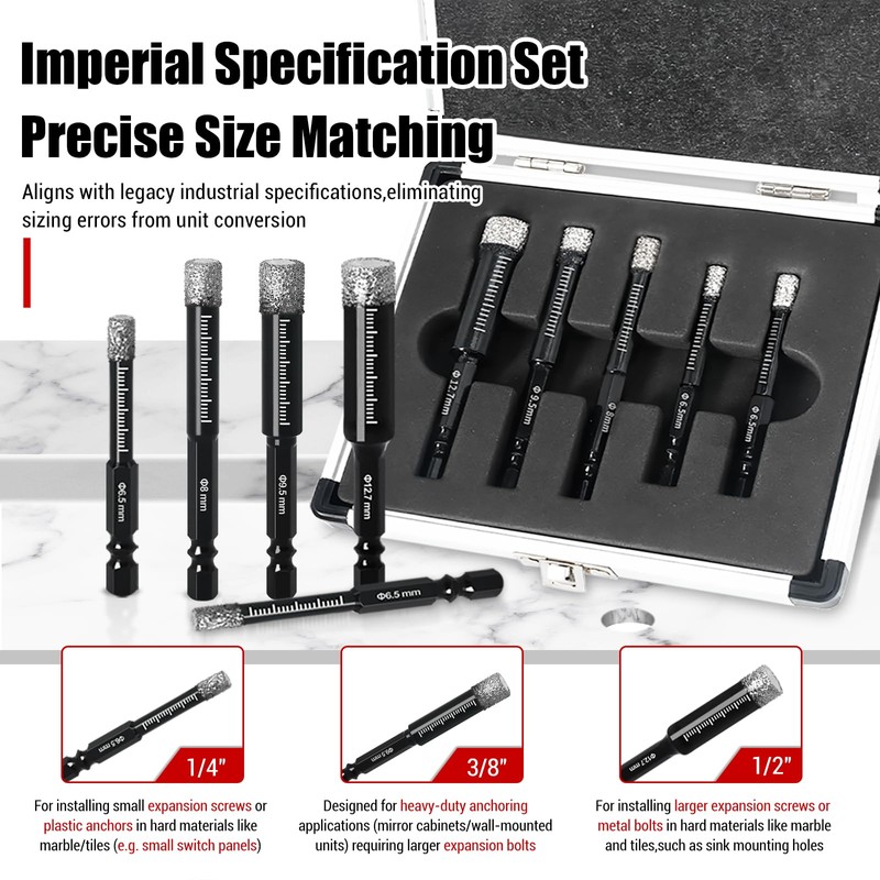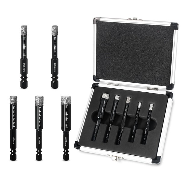 ACFAN 5PCS Diamond Drill Bit Set - 1/4", 5/16", 3/8", 1/2" Imperial Hex Shank Drill Bits for Tile, Ceramic, Marble - Brazed Diamond Grit, Cooling Wax, No Water Needed - Fits Cordless &1Electric Drills