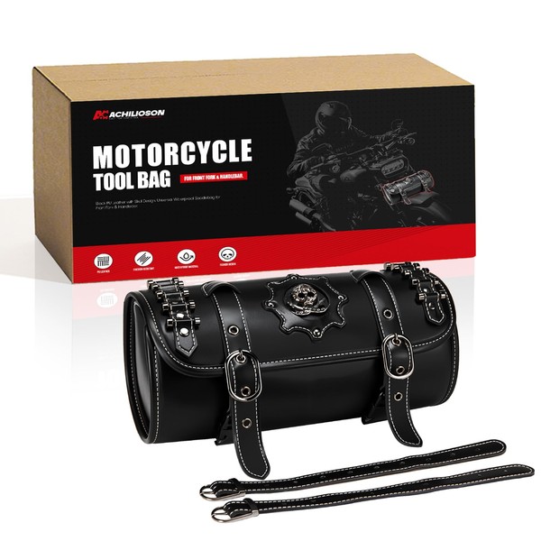 Achilioson Motorcycle Tool Bag, Black PU Leather with Skull Design, Universal...