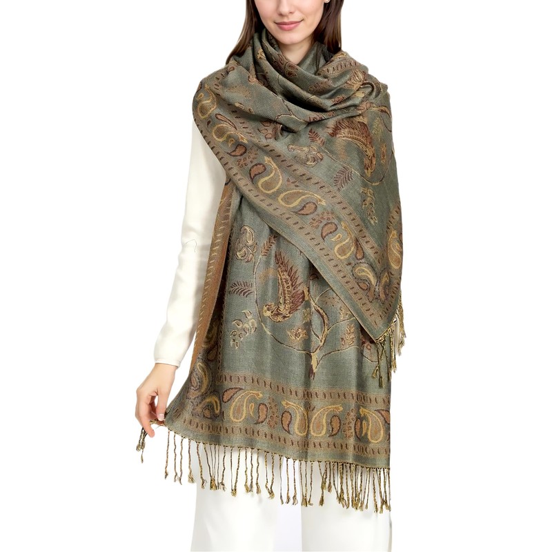 Achillea Reversible Festival Pashmina Rave Scarf Shawl Wrap (Sage Green)