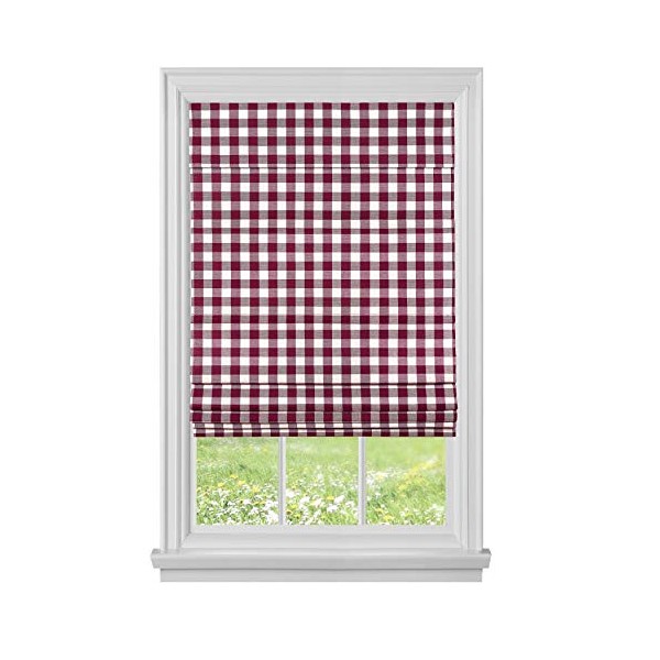 Achim Home Furnishings, Burgundy Cordless Buffalo Check Roman Window Shade, 27" x 64" (RSBC27BU04)