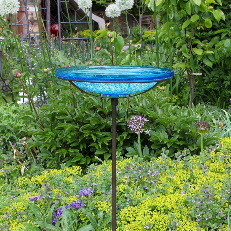 Achla Designs Crackle Glass Birdbath Bowl with Stake, 14-in, Teal