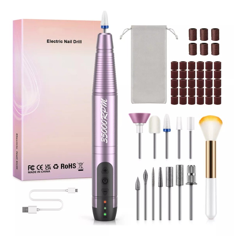 Viene con una broca de cerámica, 5pzs brocas pulidoras, 7 brocas metálicas, 31pzs bandas abrasivas y una brocha de limpieza. Ideal para todo tipo de manicura, pedicura: quitar diamantes artificiales, uñas acrílicas, uñas de gel, uñas gruesas, cutículas, piel muerta, callos y más ocasiones.