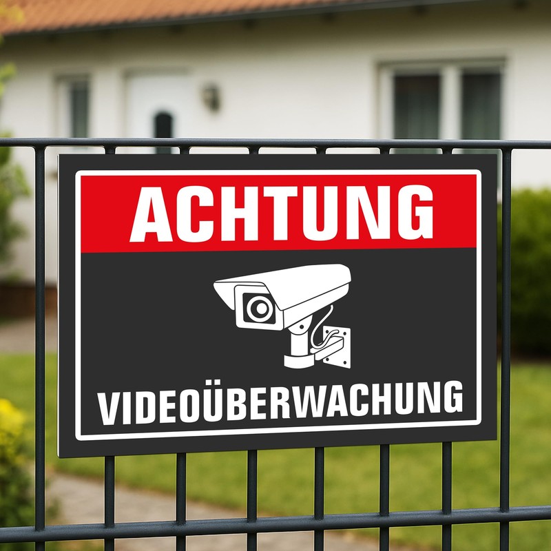 Whether at the house, in the garage, at the driveway or on the company premises - this eye-catching sign ensures that everyone immediately recognises: video surveillance is being monitored here. The sign serves as a clear signal, potentially deterrent and is also extremely durable, weatherproof and easy to assemble.