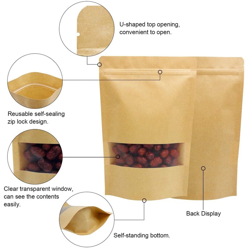 - Quantity & Material: Kraft paper bag (100 Pcs/set) are made from kraft material and plastic window, safe for food and eco-friendly.