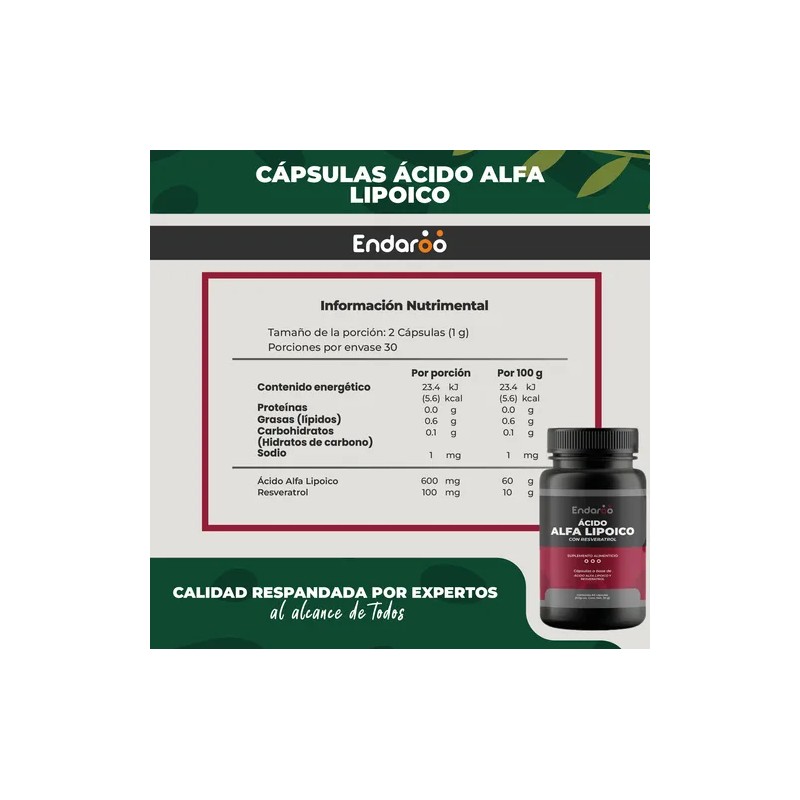 Ácido Alfa Lipoico 60 Cápsulas + Resveratrol Calidad Premium