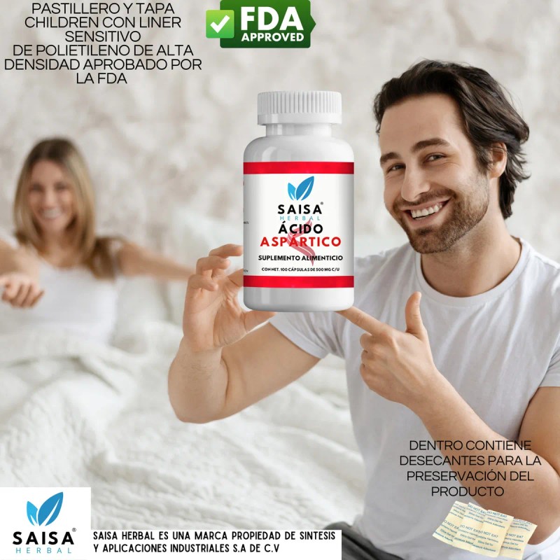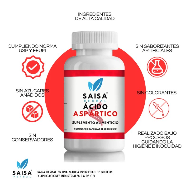 Ácido Aspártico | 100 Cápsulas | Saisa Herbal | Suplemento Alimenticio | Calidad Premium | Energía, Vitalidad y Apoyo Muscular