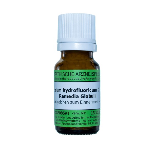 Acidum hydrofluoricum C30 (pack size: 10g) is a registered homeopathic medicine and therefore without indicating a therapeutic indication. The Globuli are size 3 sucrose stray balls, which are lactose and gluten free. This medicine is produced and controlled according to Homeopathic and European Pharmacopoeia in Austria in GMP quality by REMEDIA Homeopathie GmbH. In accordance with the principles of homeopathy, each treatment is carried out with a medicine individually adapted to the patient and his respective disease. In addition to effects, drugs can also cause side effects. For risks and side effects, please consult your doctor or pharmacist.