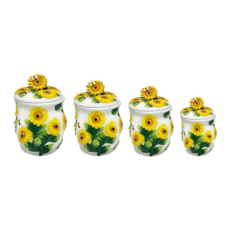 ACK 4PCs 3D Sunflower Hand Painted Ceramic Canister with Lid, Kitchen Storage...