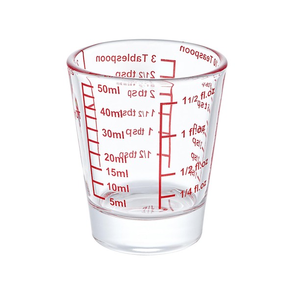 Ackers Mini Measure Heavy Glass, 32-Incremental Measurements Multi-Purpose Liquid and Dry Measuring Shot Glass, Red Single