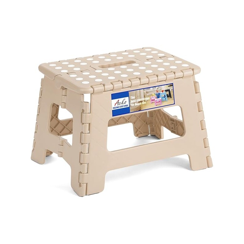 ACKO Folding Step Stool 9 Inch 300 lb Capacity, Plastic Foldable Step Stools for Kids and Adults, Folding Stools Suitable for Kitchen, Stepping Stool with Handle Khaki 1PC