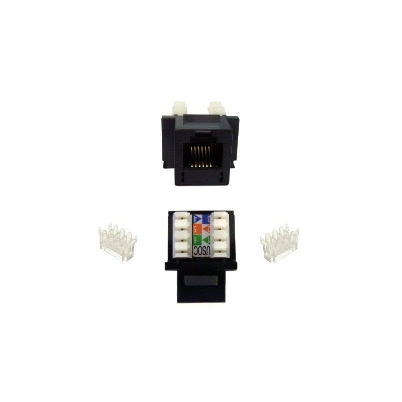 ACL Phone/Data Jack, RJ11/RJ12 Female to 110 Type Punch Down Keystone Insert, Black, 2 Pack