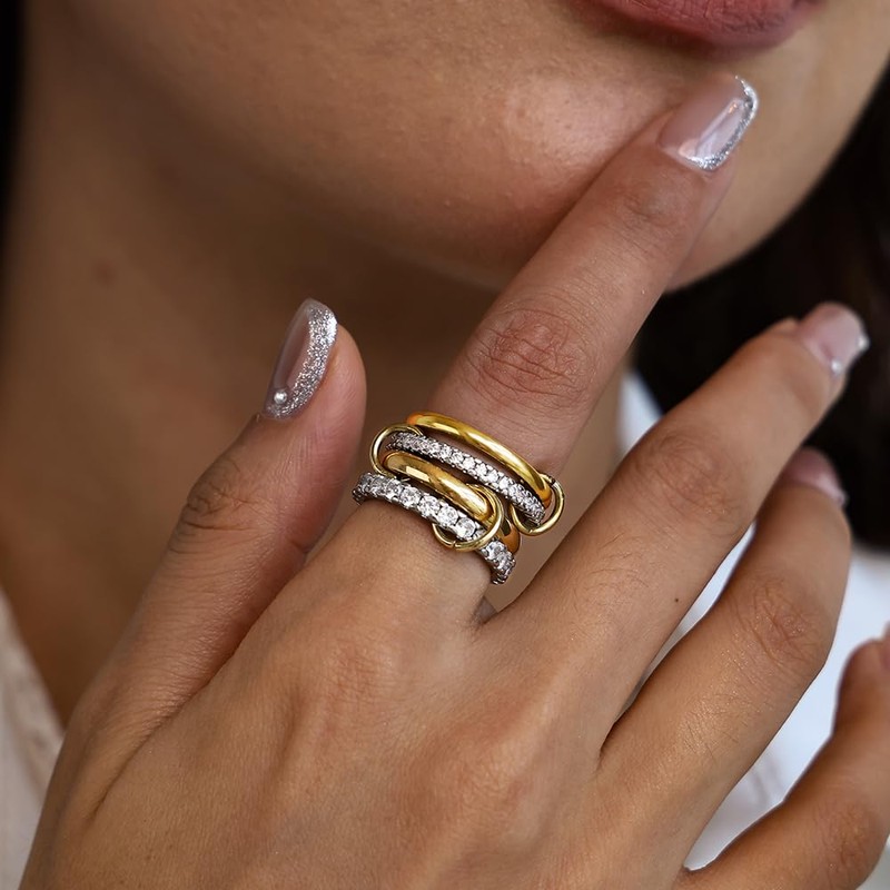 - 【Stackable Style】: Featuring a modern and trendy design, this set of interlocked rings can be worn together or separately, allowing you to customize your look with multiple stacking options.